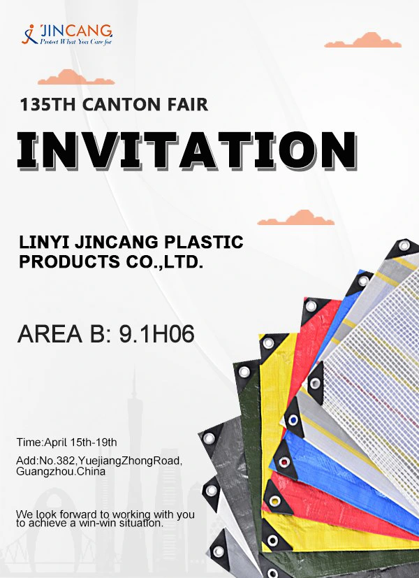 În calitate de producător de frunte al Linyi Jincang Plastic Products Co Ltd, vom participa la Târgul de 135 Canton în perioada 15-19 aprilie la Guznghou, China.Got să știm că sunteți în afacerea PE Tarpaulin, vă invităm cordial să vizitați standul nostru H06,9.1 Zona B. B.